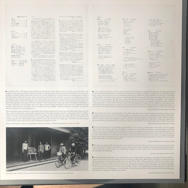 Tracklist: A1. Rainy morning (雨の朝), A2. White wind (白い風), A3. Tomorrow is an amusement park (あしたは遊園地), A4. Crow in the sky (カラスが空で), A5. Now (今), B1. Kankan shine (カンカン照り), B2. Storm (あらし), B3. I want you (君がほしいみたい), B4. Room of solitude (孤独の部屋)