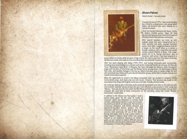Tracklist: A1. Un Dia Como Hoy, A2. IJK. Espacio Para 3, A3. Manzur, A4. Paola, B1. Solenoide, B2. Dreams, B3. En Un Lugar Desconocido, B4. El Conde De Casanare, C1. IJK. Espacio Para 3 (Live At Poliedro De Caracas 19 & 20 October 1977), C2. Manzur (Live At Poliedro De Caracas 19 & 20 October 1977), C3. Dreams (Live At Poliedro De Caracas 19 & 20 October 1977), C4. En Un Lugar Desconocido (Live At Poliedro De Caracas 19 & 20 October 1977), C5. Un Dia Como Hoy (Live At Poliedro De Caracas 19 & 20 October 1977), C6. De Nuevo Aqui (Live At Poliedro De Caracas 19 & 20 October 1977), C7. Solenoide (Live At Poliedro De Caracas 19 & 20 October 1977), C8. Lunas De Marte (Live At Poliedro De Caracas 19 & 20 October 1977), C9. Paciente 34 (Previously Unreleased), C10. De Nuevo Aqui (Previously Unreleased)