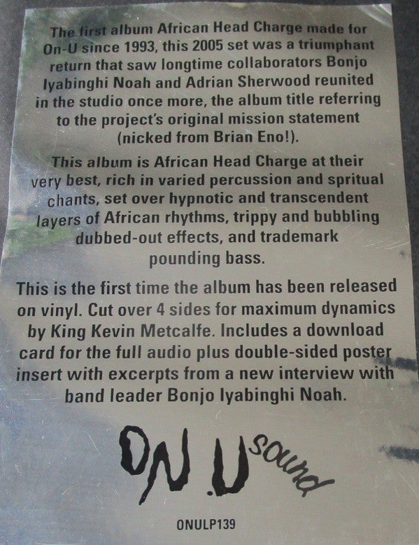 Tracklist: A1. The Big Country, A2. Surfari, A3. Positive Thoughts & Mind, A4. Unplanned, B1. Treatment For A Septic Horn, B2. Drumming Is A Language, B3. Mr. Whippy Does Djibouti, B4. Run Come See, B5. Ran Came Saw, C1. Blessed Works, C2. Work Blessed, C3. More Fluid, C4. Who Are You?, D1. Ready You Ready, D2. Ready You Ready Part 2, D3. What Is The Plan?, D4. What Is The Plan? (Version)