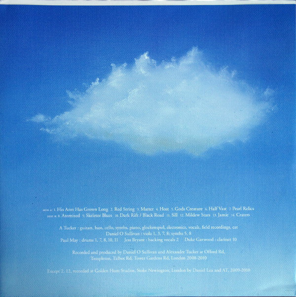 Tracklist: A1. His Arm Has Grown Long, A2. Red String, A3. Matter, A4. Hose, A5. Gods Creature, A6. Half Vast, A7. Pearl Relics, B1. Atomized, B2. Skeletor Blues, B3. Dark Rift/Black Road, B4. Sill, B5. Mildew Stars, B6. Jamie, B7. Craters