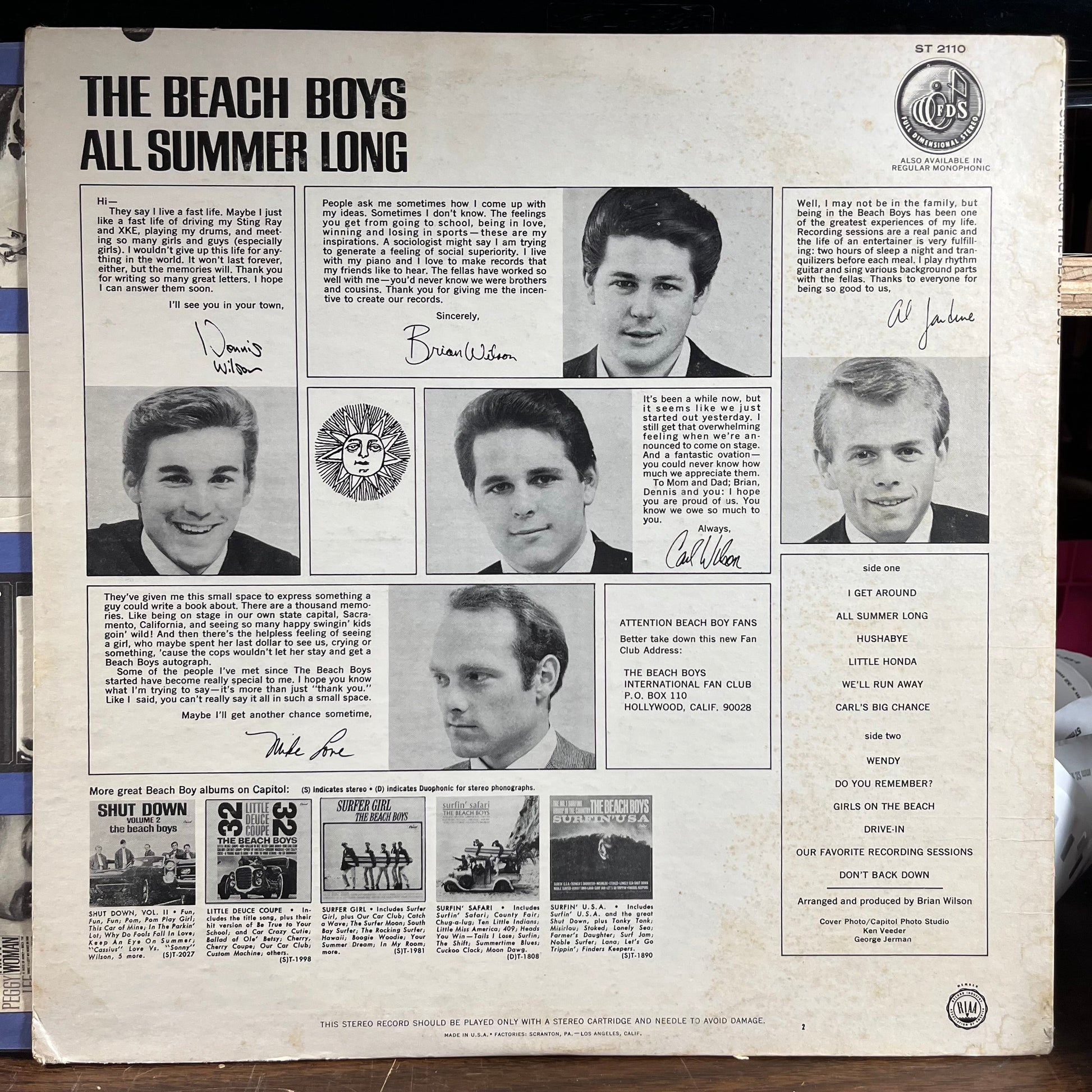 Tracklist: A1. I Get Around, A2. All Summer Long, A3. Hushabye, A4. Little Honda, A5. We'll Run Away, A6. Carl's Big Chance, B1. Wendy, B2. Do You Remember?, B3. Girls On The Beach, B4. Drive-In, B5. Our Favorite Recording Sessions, B6. Don't Back Down