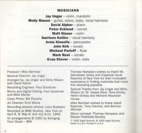 Recorded at BMG Studios, New York on April 8, 9; May 6 and July 8-10, 1992.