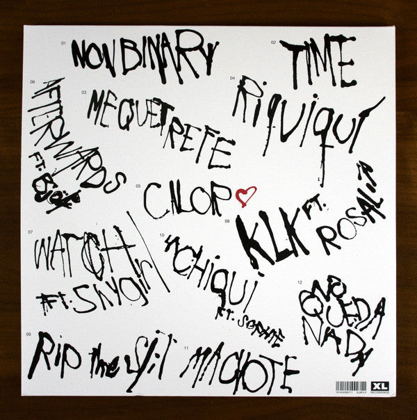 Tracklist: A1. Nonbinary, A2. Time, A3. Mequetrefe, A4. Riquiquí, A5. Calor, A6. Afterwards, B7. Watch, B8. KLK, B9. Rip The Slit, B10. La Chíqui, B11. Machote, B12. No Queda Nada