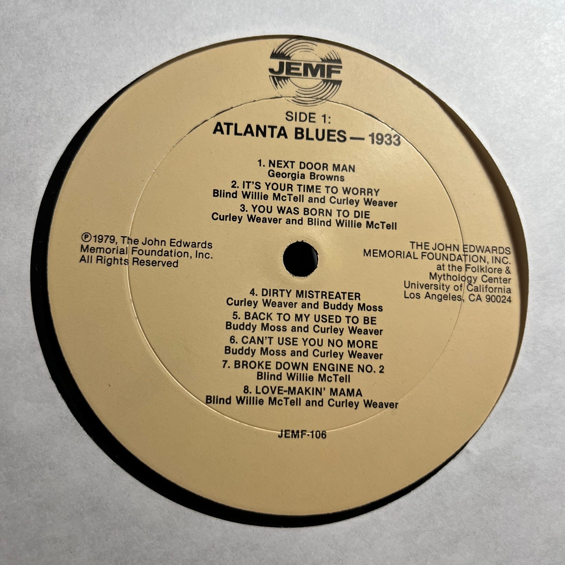Atlanta Blues 1933 (VINYL) | Excellent (EX) Very Good Plus (VG+) Get Cheap Vinyl