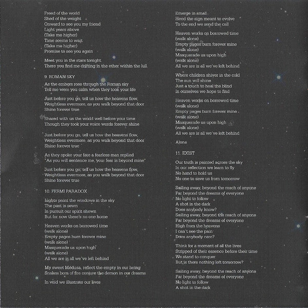 Tracklist: 1. The Stage, 2. Paradigm, 3. Sunny Disposition, 4. God Damn, 5. Creating God, 6. Angels, 7. Simulation, 8. Higher, 9. Roman Sky, 10. Fermi Paradox, 11. Exist