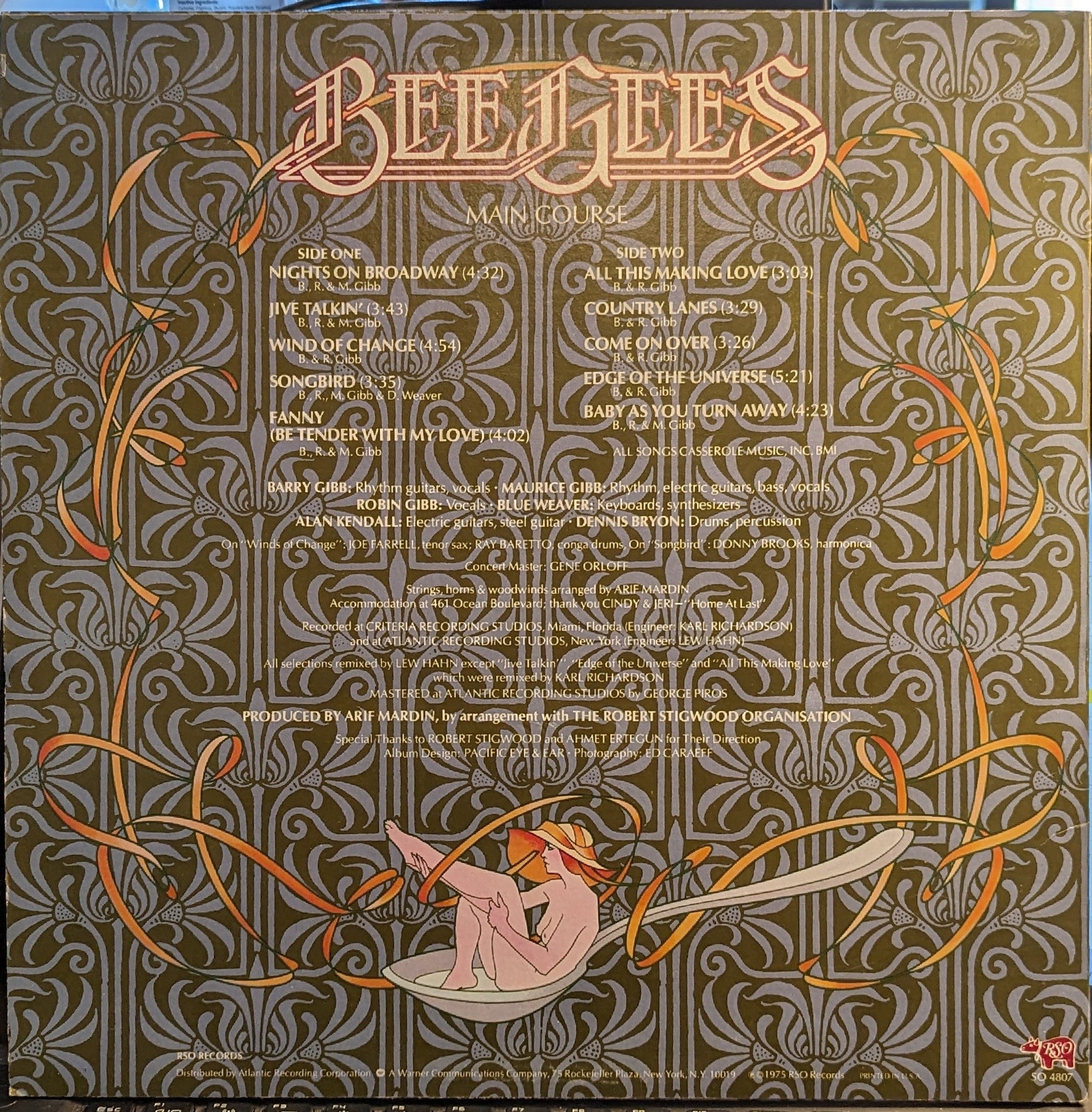 Tracklist: A1. Nights On Broadway, A2. Jive Talkin', A3. Wind Of Change, A4. Songbird, A5. Fanny (Be Tender With My Love), B1. All This Making Love, B2. Country Lanes, B3. Come On Over, B4. Edge Of The Universe, B5. Baby As You Turn Away