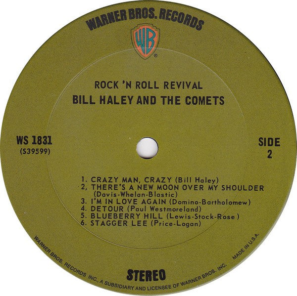 Tracklist: A1. Rock Around The Clock, A2. Blue Suede Shoes, A3. Whole Lotta Shakin' Goin' On, A4. Kansas City, A5. No Letter Today, A6. Shake, Rattle And Roll, B1. Crazy Man, Crazy, B2. There's A New Moon Over My Shoulder, B3. I'm In Love Again, B4. Detour, B5. Blueberry Hill, B6. Stagger Lee