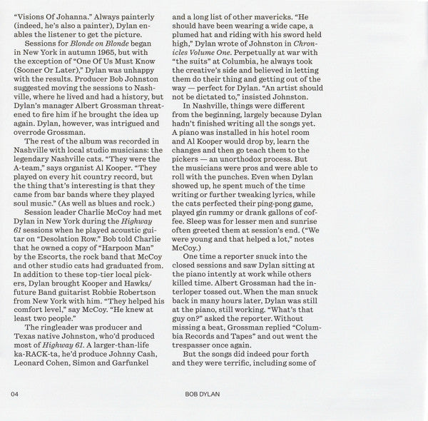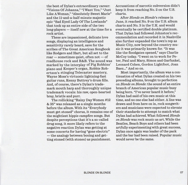 “Released on June 20, 1966, Blonde on Blonde is the third entry in Bob Dylan’s so-called ‘rock trilogy’ of the mid-1960s. Following half an electric album (Bringing It All Back Home) and a romping raw rocker (Highway 61 Revisited), Dylan renewed the sound he was seeking with number three. But words can’t fully describe the music on this double LP. It’s simultaneously wiry and mercurial, skirting the border of out-of-control – too fresh to pin down with record store bin titles.”