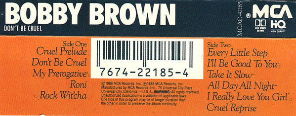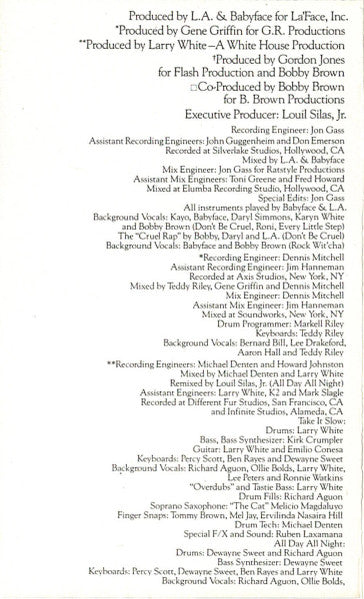 Tracklist: A1. Cruel Prelude, A2. Don't Be Cruel, A3. My Prerogative, A4. Roni, A5. Rock Wit'cha, B1. Every Little Step, B2. I'll Be Good To You, B3. Take It Slow, B4. All Day All Night, B5. I Really Love You Girl, B6. Cruel Reprise