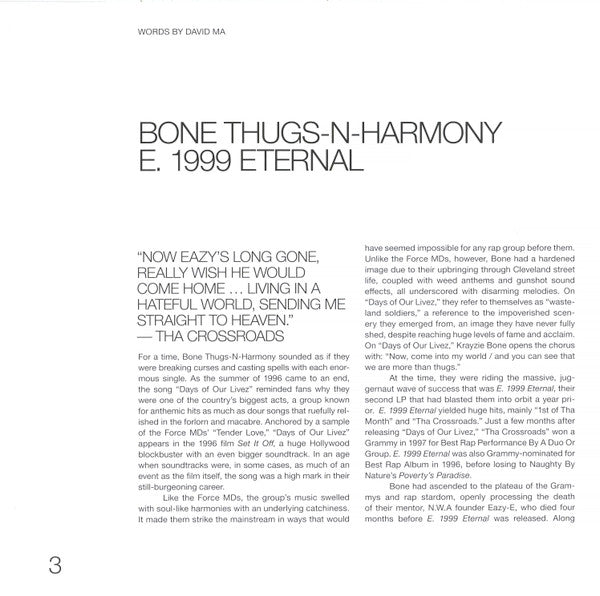 Tracklist: A1. Da Introduction, A2. East 1999, A3. Eternal, A4. Crept And We Came, B1. Down '71 (The Getaway), B2. Mr. Bill Collector, B3. Budsmokers Only, B4. Tha Crossroads, C1. Me Killa, C2. Land Of Tha Heartless, C3. No Shorts, No Losses, C4. 1st Of Tha Month, C5. Buddah Lovaz, D1. Die Die Die, D2. Mr. Ouija 2, D3. Mo' Murda, D4. Shotz To Tha Double Glock