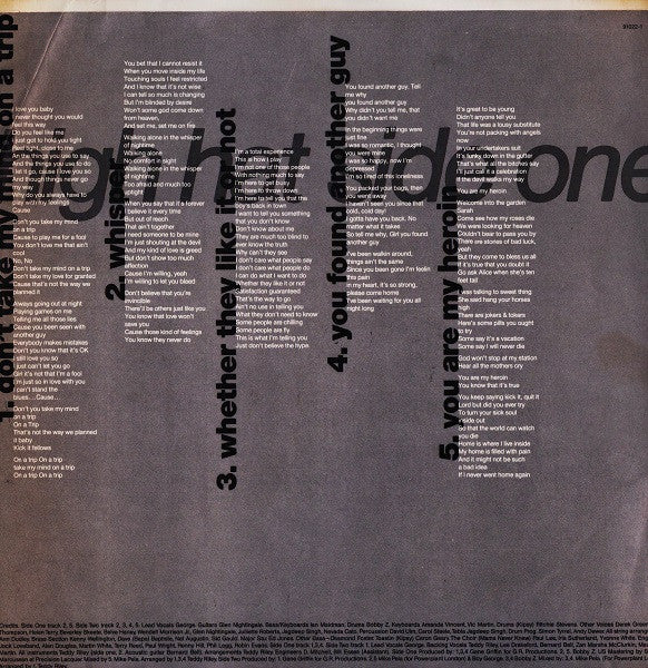 Tracklist: A1. Don't Take My Mind On A Trip, A2. Whisper, A3. Whether They Like It Or Not, A4. You Found Another Guy, A5. You Are My Heroin, B1. I'm Not Sleeping Anymore, B2. Kipsy, B3. Don't Cry, B4. Girl With Combination Skin, B5. Something Strange Called Love