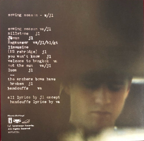 Tracklist: A1. Sowing Season, A2. Millstone, A3. Jesus, B1. Degausser, B2. Limousine (MS Rebridge), C1. You Won't Know, C2. Welcome To Bangkok, C3. Not The Sun, D1. Luca, D2. --, D3. The Archers Bows Have Broken, D4. Handcuffs