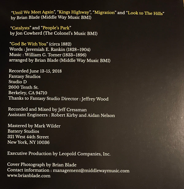 Tracklist: A1. Until We Meet Again, A2. Catalysts , A3. People's Park , B1. Kings Highway , B2. Look To The Hills , C1. Migration , C2. God Be With You