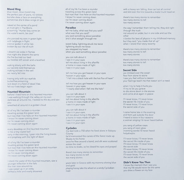 Tracklist: A1. Mood Ring, A2. Haunted Mountain, A3. Paradise, A4. Cyclades, A5. Secret Side, B1. Didn’t Know You Then, B2. Undae Dunes, B3. Where You're Coming From, B4. Lullabies, B5. Lagrimas, B6. The Rainbow