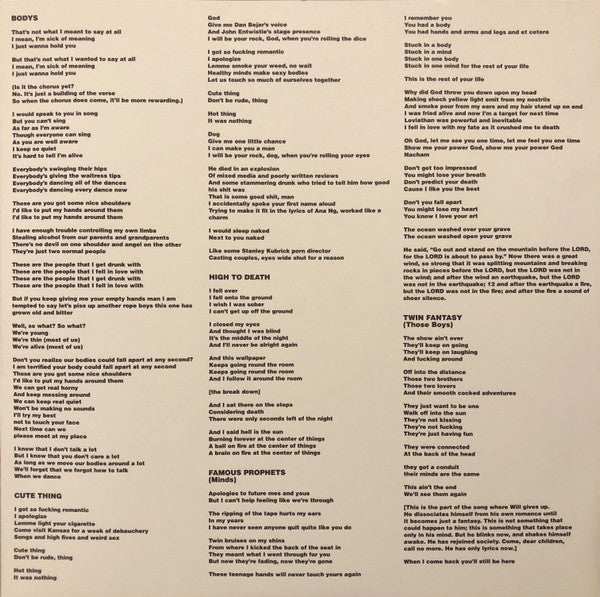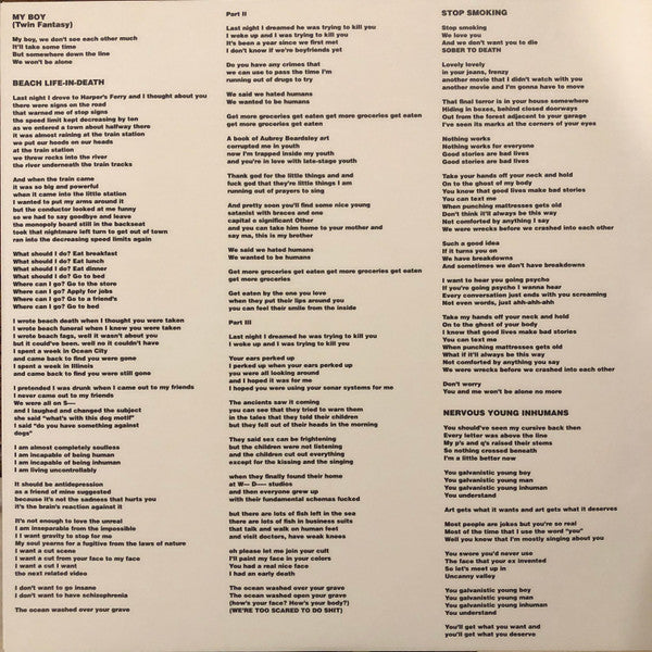 Tracklist: A1. My Boy (Twin Fantasy), A2. Beach Life-In-Death, B1. Stop Smoking, B2. Sober To Death, B3. Nervous Young Inhumans, C1. Bodys, C2 . Cute Thing, C3. High To Death, D1. Famous Prophets (Minds), D2. Twin Fantasy (Those Boys)
