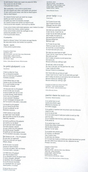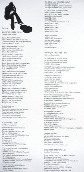 Tracklist: A1. Quelque Chose, A2. Un Secret, A3. Rien Que L'extase, A4. Un Grand Amour, A5. Le Petit Guépard, A6. Your Lady, A7. Partir Dans la Nuit, B1. Les Séparés, B2. Comme Si C'était Hier, B3. La Chambre Vide, B4. Un Ange, B5. Voglio L'amore, B6. Le Garçon Triste, B7. Porque Te Vas