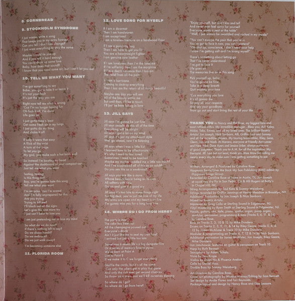 Tracklist: A1. Love / Lover / Friend, A2. Rebirth, A3. Miami, A4. Better Than Gold, B1. Everywhere I Go I Bring The Rain, B2. The Doldrums, B3. The Kiss, C1. Cornbread, C2. Stockholm Syndrome, C3. Tell Me What You Want, C4. Florida Room, C5. Love Song For Myself, D1. Jill Says, D2. Where Do I Go From Here?
