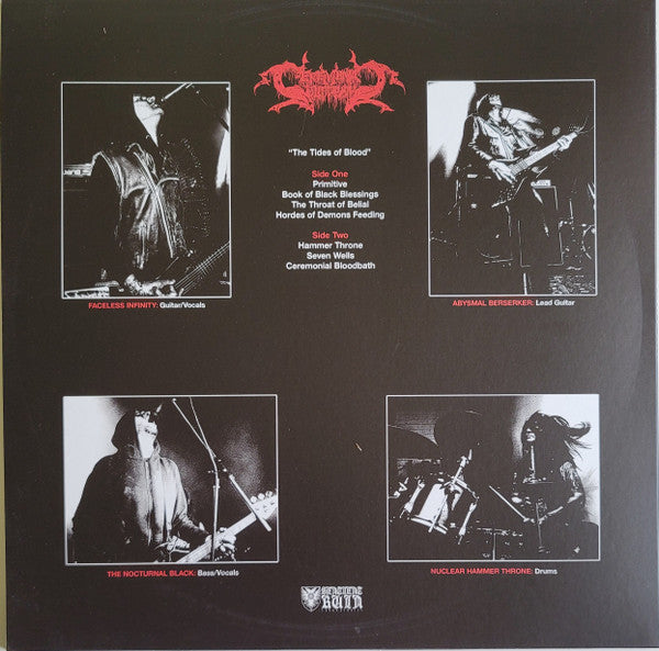 Tracklist: A1. Primitive, A2. Book Of Black Blessings, A3. The Throat Of Belial, A4. Hordes Of Demons Feeding, B1. Hammer Throne, B2. Seven Wells, B3. Ceremonial Bloodbath