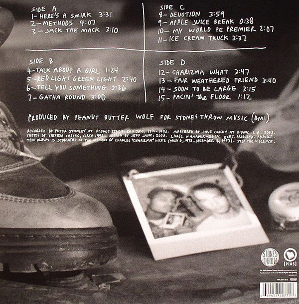 Tracklist: A1. Here's A Smirk, A2. Methods, A3. Jack The Mack, B1. Talk About A Girl, B2. Red Light Green Light, B3. Tell You Something, B4. Gatha Round, C1. Devotion, C2. Apple Juice Break, C3. My World Premier, C4. Ice Cream Truck, D1. Charizma What, D2. Fair Weathered Friend, D3. Soon To Be Large, D4. Pacin' The Floor