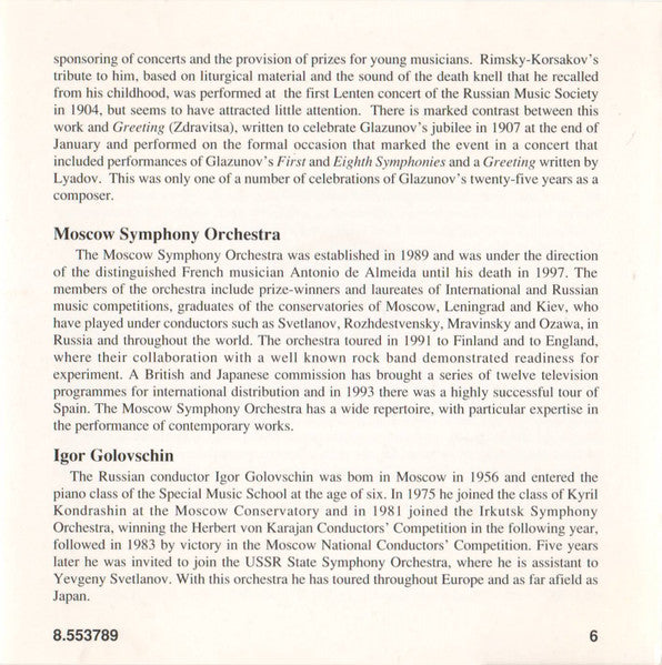 Recorded at Mosfilm Studio, Moscow, Russia in February 1996