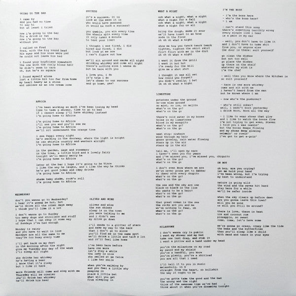 Tracklist: . FACE A, 1. Going To The Bar, 2. Success, 3. What A Night, 4. I'm The Boss, 5. Africa, . FACE B, 6. Limestone, 7. Wednesday, 8. Olives And Wine, 9. Oh Boy, 10. Milestone