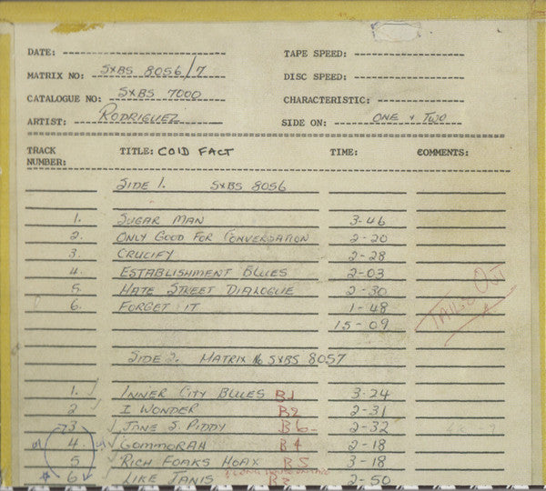 Tracklist: 1. Sugar Man, 2. Only Good For Conversation, 3. Crucify Your Mind, 4. This Is Not A Song, It's An Outburst: Or, The Establishment Blues, 5. Hate Street Dialogue, 6. Forget It, 7. Inner City Blues, 8. I Wonder, 9. Like Janis, 10. Gommorah (A Nursery Rhyme), 11. Rich Folks Hoax, 12. Jane S. Piddy