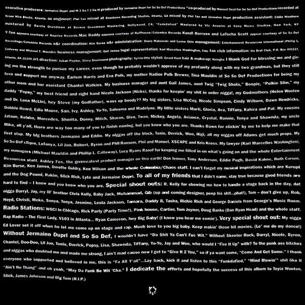 Tracklist: A1. Da Shit Ya Can't Fuc Wit, A2. Fa All Y'all, A3. Fire It Up, A4. Celebration Time, A5. Funkdafied, B1. May Da Funk Be Wit 'Cha, B2. Ain't No Thang, B3. Come And Get Some, B4. Mind Blowin', B5. Give It 2 You