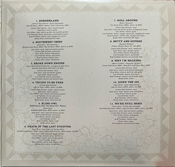 Tracklist: A1. Borderland, A2. Southwest Chief, A3. Broke Down Engine, B1. Trying To Be Free, B2. Blind Owl, B3. Death Of The Last Stripper, C1. Roll Around, C2. Betty And Dupree, C3. Why I'm Walking, D1. Down The 285, D2. We're Still Here