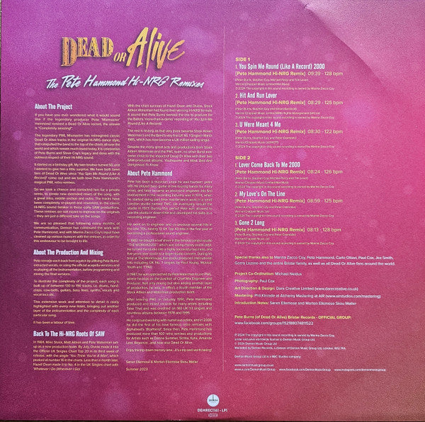 Tracklist: A1. You Spin Me Round (Like A Record) 2000 (Pete Hammond Hi-NRG Remix), A2. Hit And Run Lover (Pete Hammond Hi-NRG Remix), A3. U Were Meant 4 Me (Pete Hammond Hi-NRG Remix), B1. Lover Come Back To Me 2000 (Pete Hammond Hi-NRG Remix), B2. My Love's On The Line (Pete Hammond Hi-NRG Remix), B3. Gone 2 Long (Pete Hammond Hi-NRG Remix), C1. Total Stranger (Pete Hammond Hi-NRG Remix), C2. Unhappy Birthday (Pete Hammond Hi-NRG Remix), D1. Something In My House 2000 (Pete Hammond Hi-NRG Remix), D2. I Don't Care About Your Heart (Pete Hammond Hi-NRG Remix), D3. My Heart Goes Bang 2000 (Pete Hammond Hi-NRG Remix)