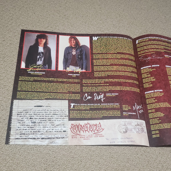 Tracklist: A1. Infernal Death, A2. Zombie Ritual , A3. Denial Of Life , A4. Sacrificial , A5. Mutilation , A6. Regurgitated Guts, B1. Baptized In Blood, B2. Torn To Pieces , B3. Evil Dead, B4. Scream Bloody Gore, B5. Beyond The Unholy Grave, B6. Land Of No Return