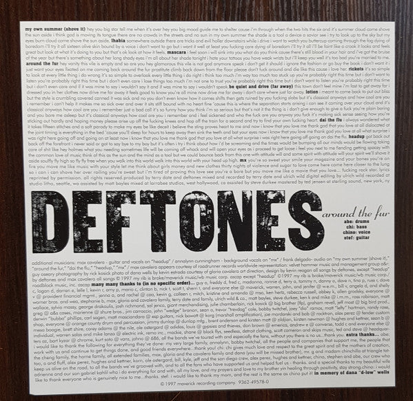 Tracklist: A1. My Own Summer (Shove It), A2. Lhabia, A3. Mascara, A4. Around The Fur, A5. Rickets, B1. Be Quiet And Drive (Far Away), B2. Lotion, B3. Dai The Flu, B4. Headup, B5. MX
