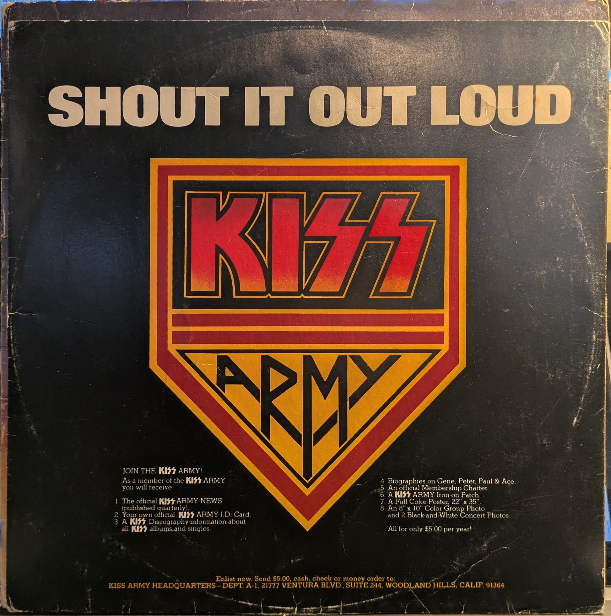 Custom (cardstock) inner includes info to join Kiss Army