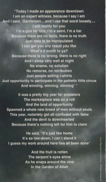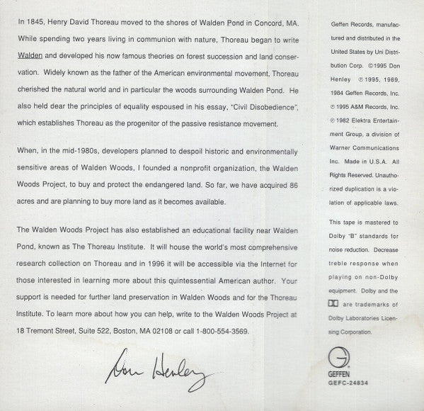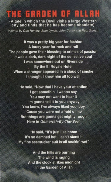 Tracklist: A1. Dirty Laundry, A2. The Boys Of Summer, A3. All She Wants To Do Is Dance, A4. Not Enough Love In The World, A5. Sunset Grill, A6. The End Of The Innocence, A7. The Last Worthless Evening, B1. New York Minute, B2. I Will Not Go Quietly, B3. The Heart Of The Matter, B4. The Garden Of Allah, B5. You Don't Know Me At All, B6. Everybody Knows