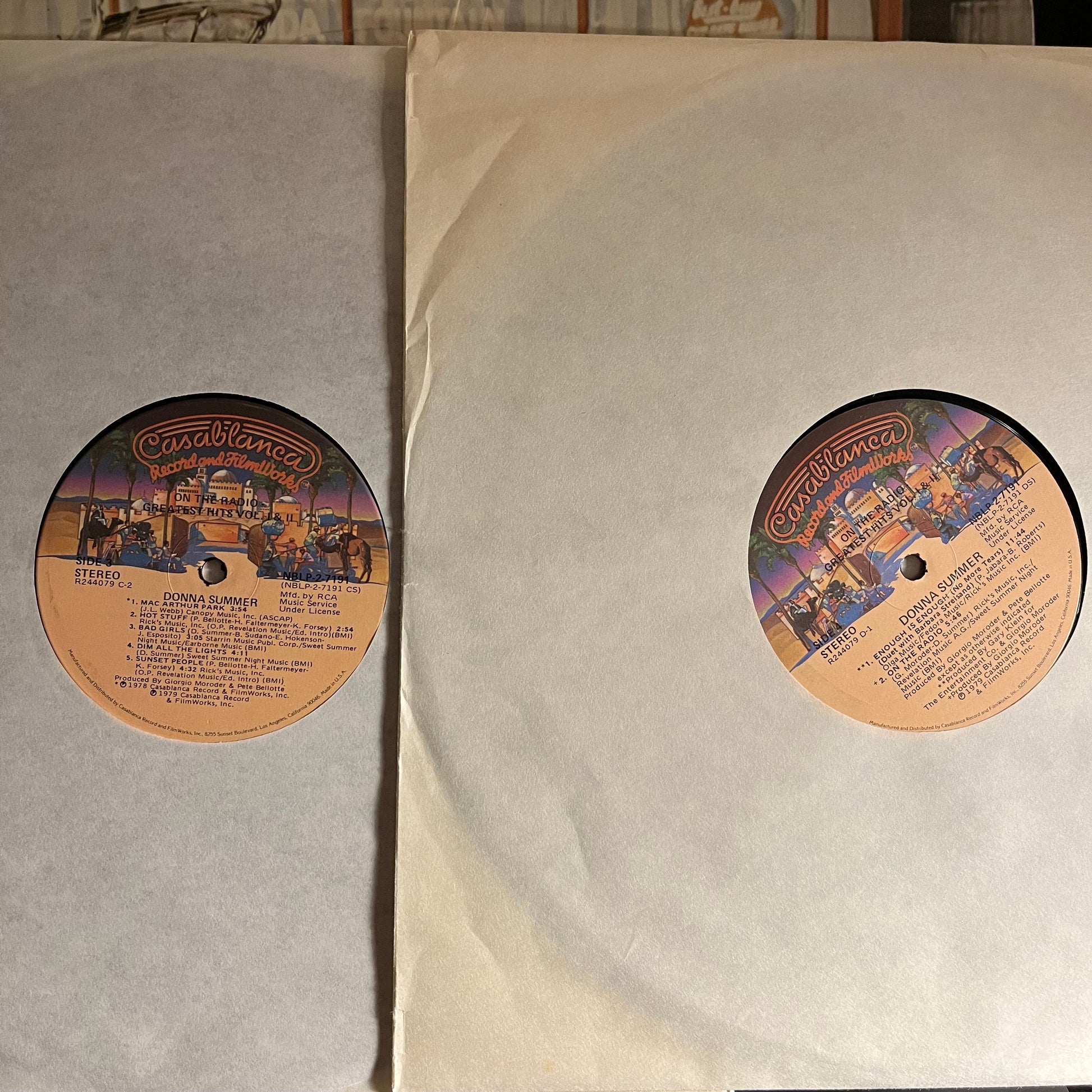 Tracklist: A1. On The Radio, A2. Love To Love You Baby, A3. Try Me, I Know We Can Make It, A4. I Feel Love, A5. Our Love, B1. I Remember Yesterday, B2. I Love You, B3. Heaven Knows, B4. Last Dance, C1. MacArthur Park, C2. Hot Stuff, C3. Bad Girls, C4. Dim All The Lights, C5. Sunset People, D1. No More Tears (Enough Is Enough), D2. On The Radio (Long Version)