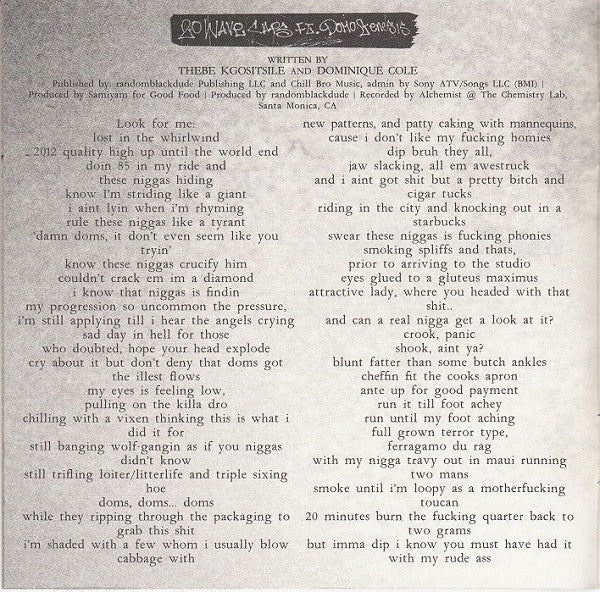 Tracklist: 1. Pre, 2. Burgundy, 3. 20 Wave Caps, 4. Sunday, 5. Hive, 6. Chum, 7. Sasquatch, 8. Centurion, 9. 523, 10. Uncle Al, 11. Guild, 12. Molasses, 13. Whoah, 14. Hoarse, 15. Knight