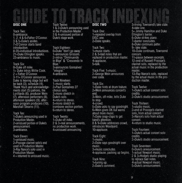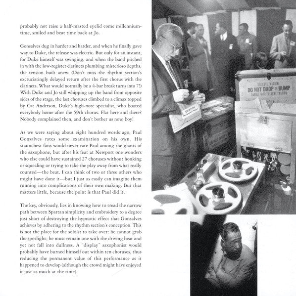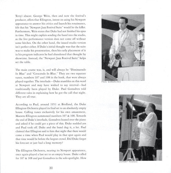 Tenor Saxophone – Paul Gonsalves (tracks: 1-1, 1-3, 1-5, 1-7, 1-9, 1-11, 1-13, 1-15, 1-17, 1-19, 2-2, 2-3, 2-5, 2-7 to 2-9, 2-11, 2-13, 2-15, 2-17)