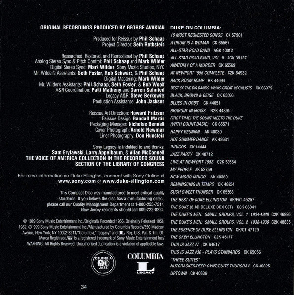 Piano – Duke Ellington (tracks: 1-1, 1-3, 1-5, 1-7, 1-9, 1-11, 1-13, 1-15, 1-17, 1-19, 2-2, 2-3, 2-5, 2-7 to 2-9, 2-11, 2-13, 2-15, 2-17)