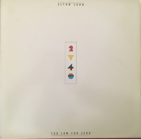 Tracklist: A1. Cold As Christmas (In The Middle Of The Year), A2. I'm Still Standing, A3. Too Low For Zero, A4. Religion, A5. I Guess That's Why They Call It The Blues, B1. Crystal, B2. Kiss The Bride, B3. Whipping Boy, B4. Saint, B5. One More Arrow