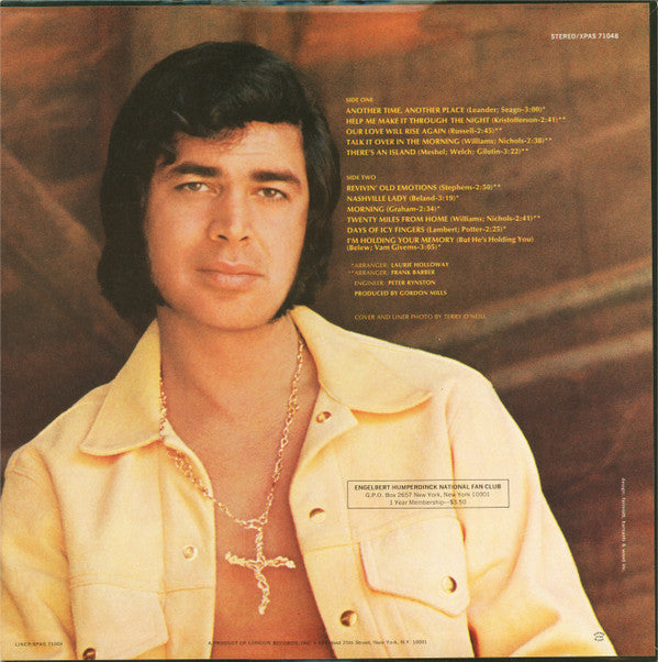 Tracklist: A1. Another Time, Another Place, A2. Help Me Make It Through The Night, A3. Our Love Will Rise Again, A4. Talk It Over In The Morning, A5. There's An Island, B1. Revivin' Old Emotions, B2. Nashville Lady, B3. Morning, B4. Twenty Miles From Home, B5. Days Of Icy Fingers, B6. I'm Holding Your Memory (But He's Holding You)