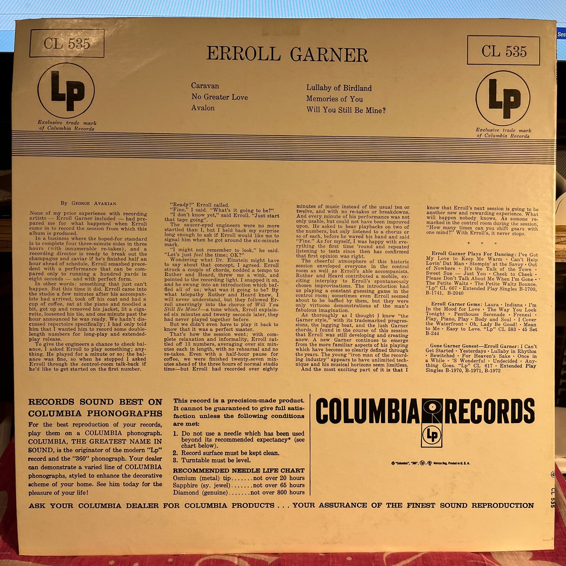 Tracklist: A1. Caravan, A2. (There Is) No Greater Love, A3. Avalon, B1. Lullaby Of Birdland, B2. Memories Of You, B3. Will You Still Be Mine?