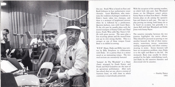 Piano – Count Basie (tracks: 1, 2, 4 to 8, 10, 15), Duke Ellington (tracks: 1, 3 to 8, 10 to 13, 15)