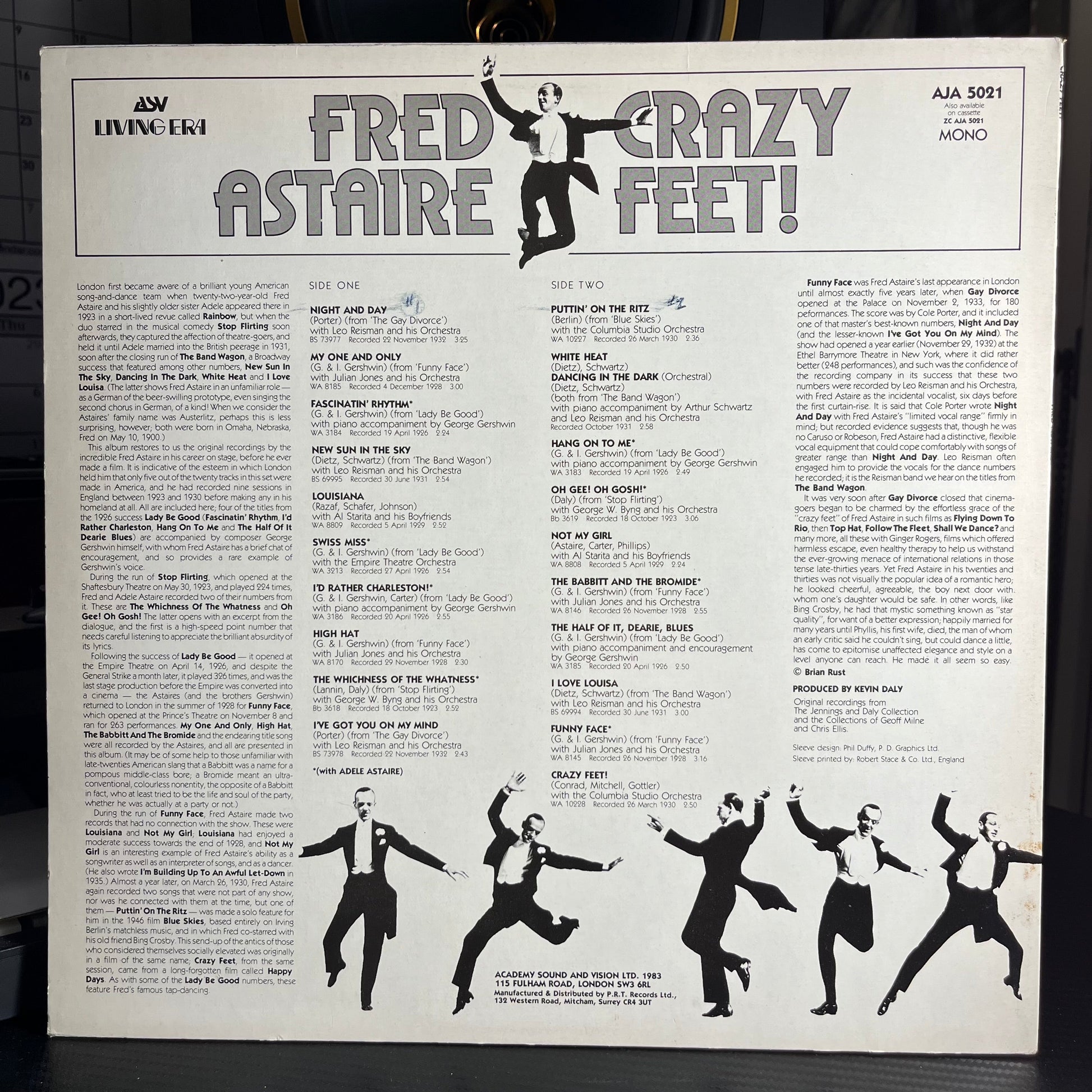 Tracklist: A1. Night And Day (From "The Gay Divorce"), A2. My One And Only (From "Funny Face"), A3. Fascinatin' Rhythm (From "Lady Be Good"), A4. New Sun In The Sky (From "The Band Wagon"), A5. Louisiana, A6. Swiss Miss (From "Lady Be Good"), A7. I'd Rather Charleston! (From "Lady Be Good"), A8. High Hat (From "Funny Face"), A9. The Whichness Of The Whatness (From "Stop Flirting"), A10. I've Got You On My Mind (From "The Gay Divorce"), B1. Puttin' On The Ritz (From "Blue Skies"), . White Heat / Dancing In The Dark, B3. Hang On To Me (From "Lady Be Good"), B4. Oh Gee! Oh Gosh! (From "Stop Flirting"), B5. Not My Girl, B6. The Babbitt And The Bromide (From "Funny Face"), B7. The Half Of It, Dearie, Blues (From "Lady Be Good"), B8. I Love Louisa (From "The Band Wagon"), B9. Funny Face (From "Funny Face"), B10. Crazy Feet !
