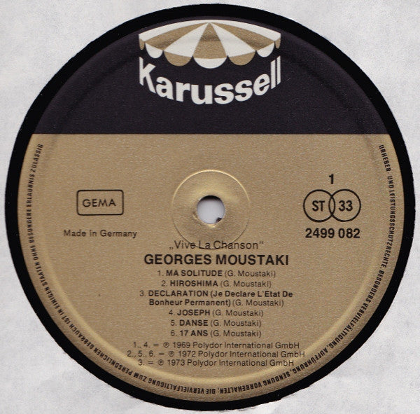Tracklist: A1. Ma Solitude, A2. Hiroshima, A3. Declaration (Je Declare L'Etat De Bonheaur Permanent), A4. Joseph, A5. Danse, A6. 17 Ans, B1. Les Marchands, B2. Grand-Pere, B3. Il Y Avait Un Jardin, B4. En Mediterranee, B5. Les Amis, B6. Nadjejda