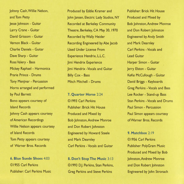 Vocals – Bono, Carl Perkins, Johnny Cash, Tom Petty, Willie Nelson