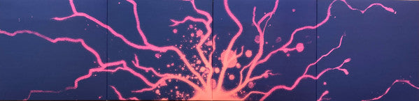 Pressed on four colored 140gm vinyls (2x solid red and 2x solid blue)—each housed in a white die-cut paper sleeve in a colored single-pocket jacket forming a 4-part-collage when aligned.