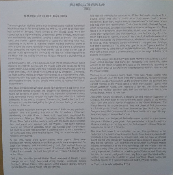 Tracklist: A1. Tezeta, A2. Endegena, A3. Zengadyw Derekou, A4. Gumegum, B1. Nefas New Zemedie, B2. Atmetalegnem Woi, B3. Mestirawi Debdabe, B4. Ou-Ou-Ta, B5. Aya Belew Belew