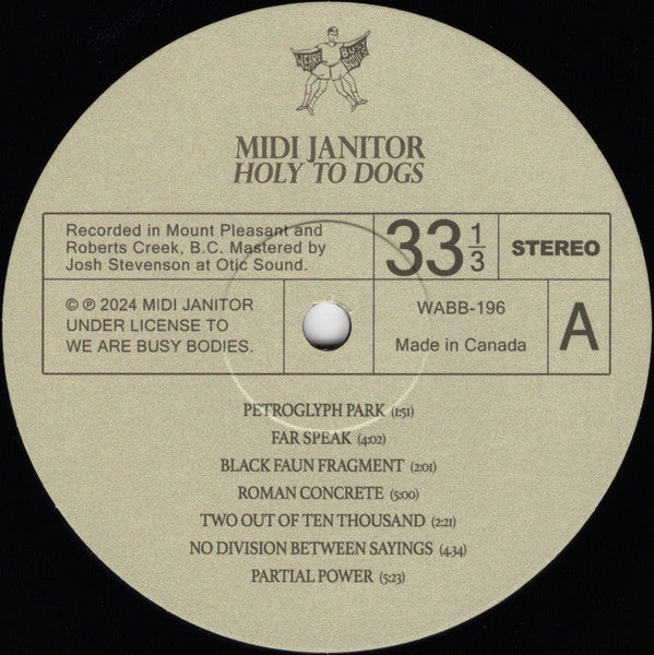 Tracklist: A1. Petroglyph Park, A2. Far Speak, A3. Black Faun Fragment, A4. Roman Concrete, A5. Two Out Of Ten Thousand, A6. No Division Between Sayings, A7. Partial Power, B1. Channel Ridge, B2. White Faun Fragment, B3. Split Foot, B4. Holy To Dogs, B5. Study For A Sacred Vehicle, B6. P. Oxy 655