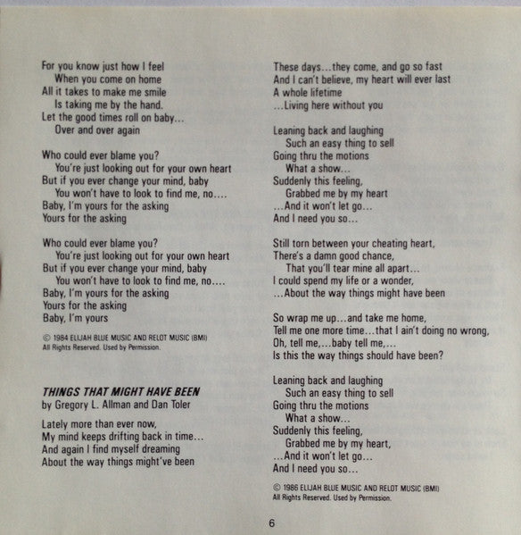 Written-By – Dan Toler, Gregory L. Allman*