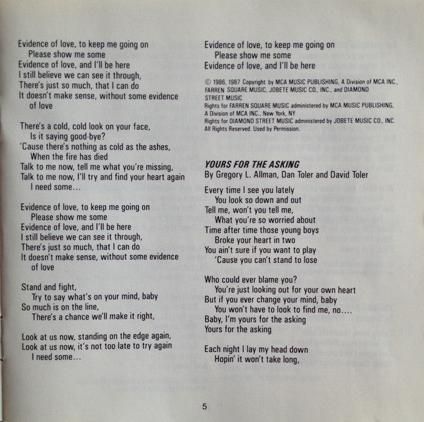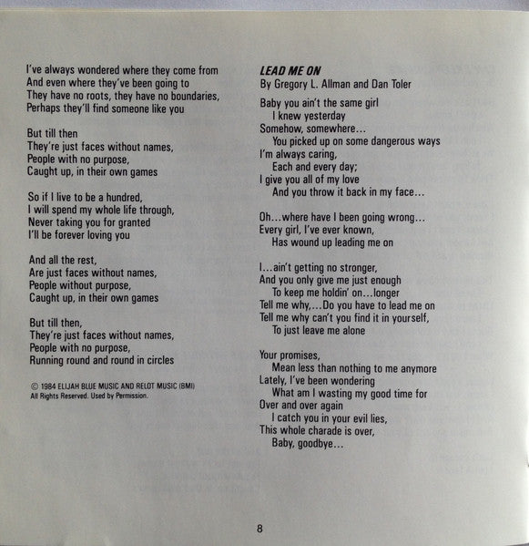 Written-By – Dan Toler, David Toler*, Gregory L. Allman*