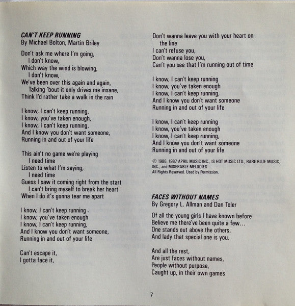 Written-By – Martin Briley, Michael Bolton